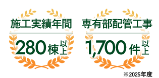 アイギ設備は、これまで280棟以上、専有部分の配管工事において1,700件を超える確かな実績を積み上げてきました。数多くの現場を経験しているからこそ、建物の構造に合わせた的確な現地調査はもちろん、住民様お一人おひとりの不安に寄り添った丁寧なご説明、そして安心・安全な施工が可能です。