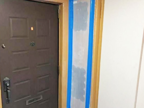 共用部ではエレベーター周辺や通路を丁寧に養生し、居住者様の動線や安全確保に配慮。