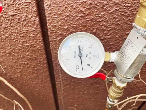 空気圧・水圧による試験を行い、接続部や継手部分を含めて配管の安全性と施工品質を丁寧にチェックし、防災設備として長期的に安心して使用できる状態であることを確認しています。