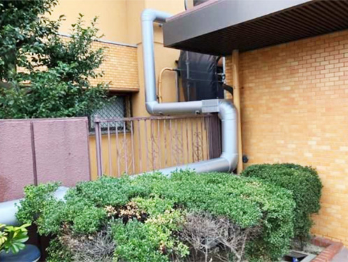 既存の連結送水管は地中深くに埋設されているため、掘削して撤去・更新する場合には高額な工事費や建物・外構への影響が懸念されました。そこで既存配管は残し、新たなルートを確保して連結送水管を引き直す工法をご提案。