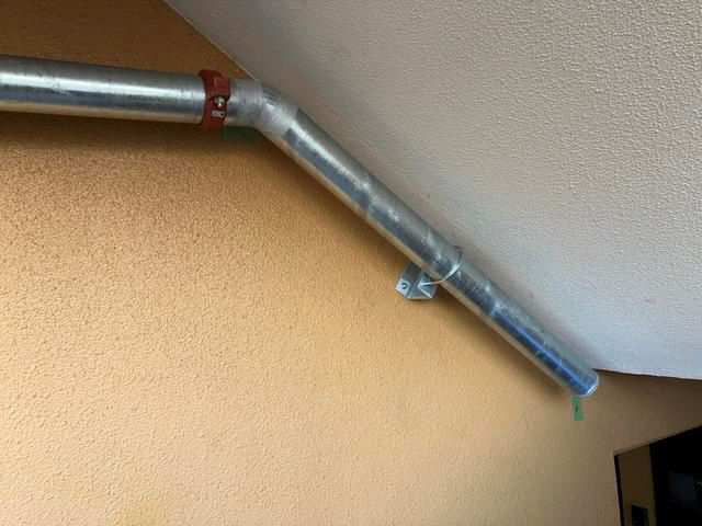 階段周辺で配管ルートを形成するための加工を行い、ブラケットを設置して配管を固定する下地を構築しました。