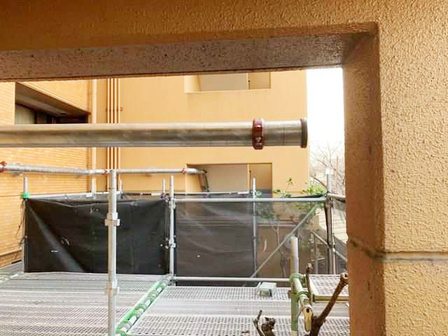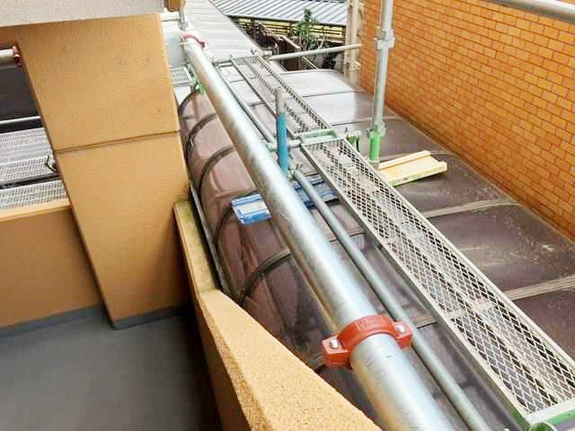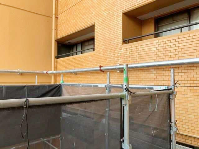 共用部での作業となるため、安全確保と作業スペース管理を徹底しながら施工を進めています。